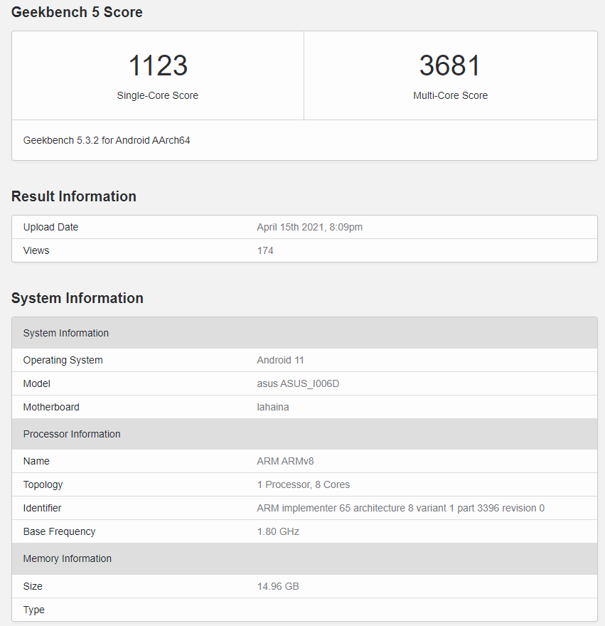The Asus Zenfone 8 Mini (ASUS_I006D) has appeared with Qualcomm’s latest flagship SOC i.e. Snapdragon 888. It scored 1123 and 3681 in single and multi-core test respectively which is quite impressive as it slightly higher other smartphones with Snapdragon 888.