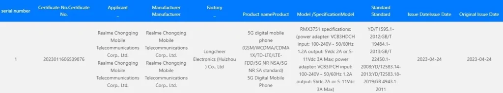 The vanilla version has recently received 3C certification, which has revealed some of its features. According to the certification, the 5G variant (RMX3751) will come equipped with 33W fast charging and 5G connectivity support. The phone’s design has also been revealed through its previous appearance at TENAA certification. Past leaks have suggested that the vanilla 5G variant will feature a 6.4-inch AMOLED display and be powered by a Dimensity 900 processor.