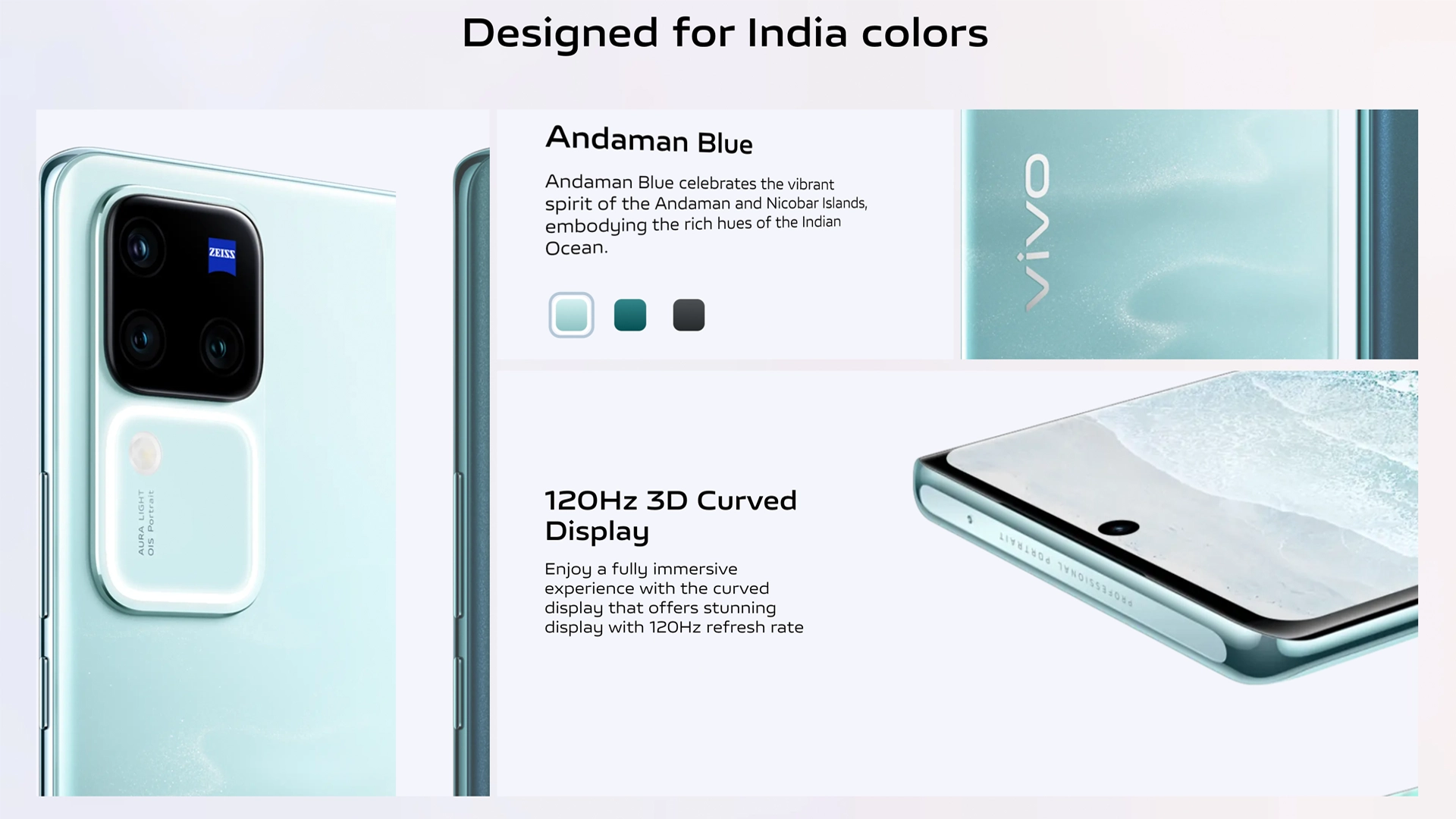 Scheduled for a March 7th launch in India at noon IST, vivo is bringing the V30 and V30 Pro to the world’s second-largest smartphone market. While the V30 Pro flaunts its Andaman Blue, Peacock Green, and Classic Black color options, details about the V30’s color availability remain under wraps.